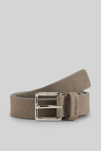 Aus feinem Veloursleder begeistert der Gürtel mit eckiger Dornschließe und Logo-Prägung.