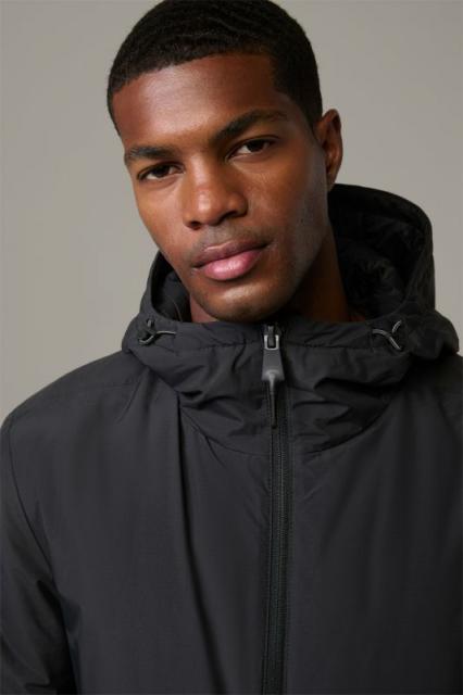 Performance Piece: In der wind- und wasserabweisenden Tech-Qualität überzeugt die leicht wattierte Nylon-Jacke First mit Tunnelzugkapuze und justierbarem Saum als Must-have-Allrounder.