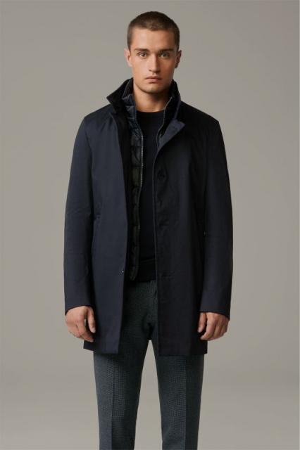Begeistert als moderner Einreiher mit Stehkragen und abzippbarem Stepp-Inlay. Perforiertes Teilfutter und Bewegungsschlitz sorgen für Komfort.